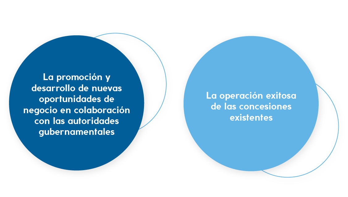 - Mejorar el desempeño operativo de las concesiones, buscando maximizar la rentabilidad de sus concesiones en términos de los flujos de efectivo generados por las mismas, concentrándose para ello en incrementar el nivel de eficiencia de sus operaciones.